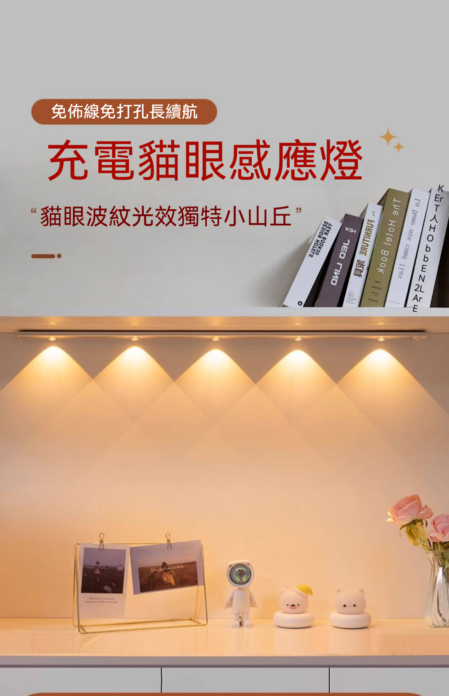 【免打孔魔法光!】充電貓眼感應燈條|山丘光效×人體感應×三色變光×磁吸安裝