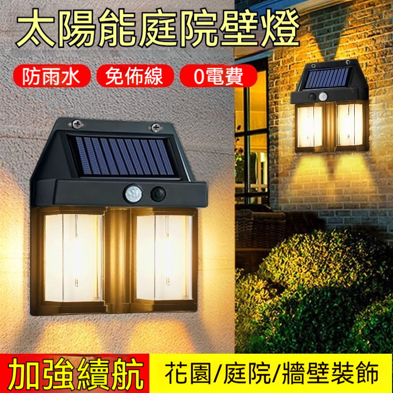 太陽能庭院壁燈|雙燈頭270°廣角環繞照明✨ 全年0電費!免佈線免電費,智慧感應超省心! 陰雨天也能亮整週,照亮你回家的路