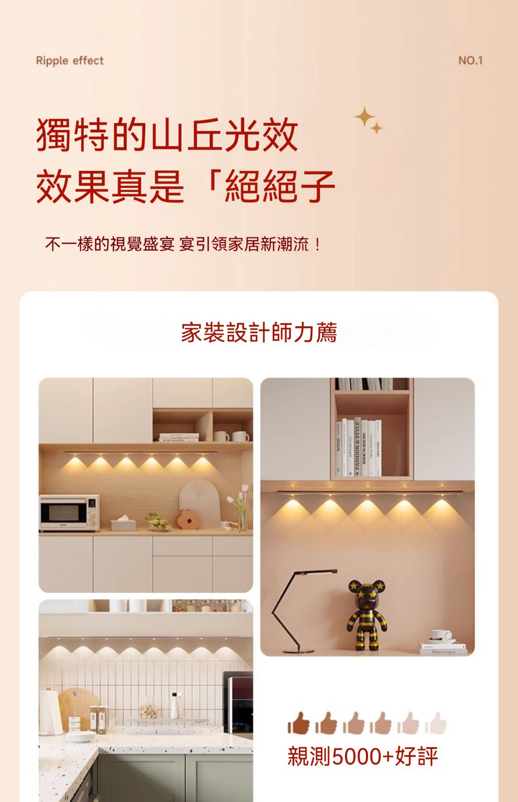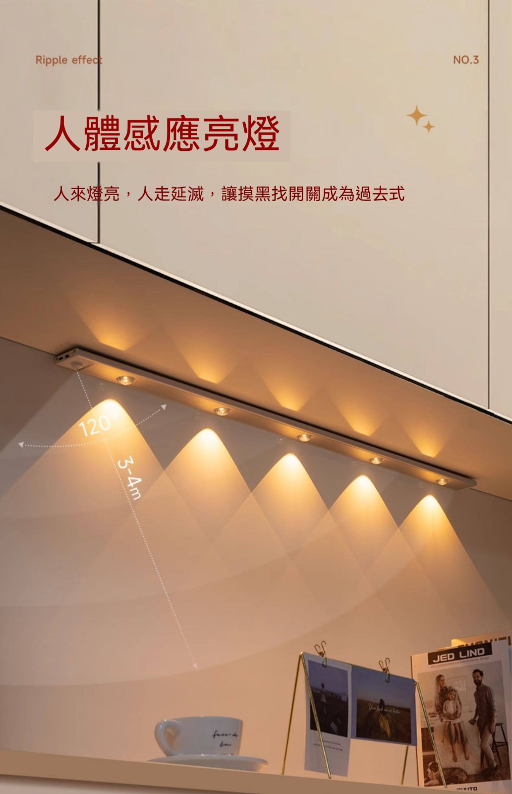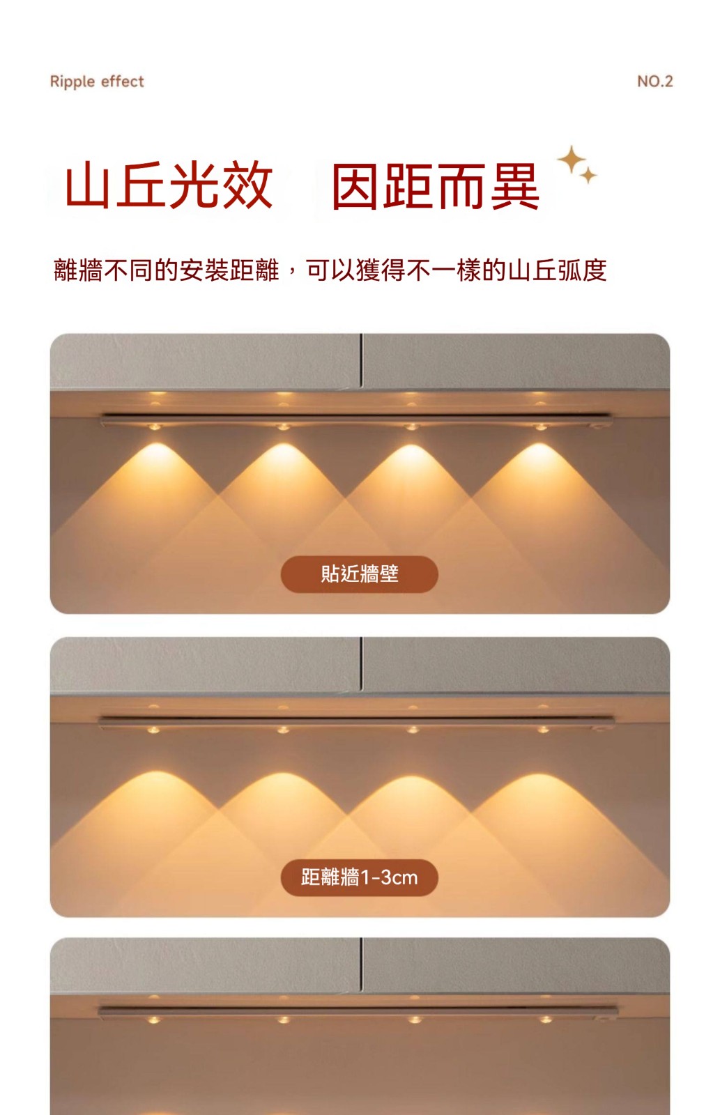 【免打孔魔法光!】充電貓眼感應燈條|山丘光效×人體感應×三色變光×磁吸安裝