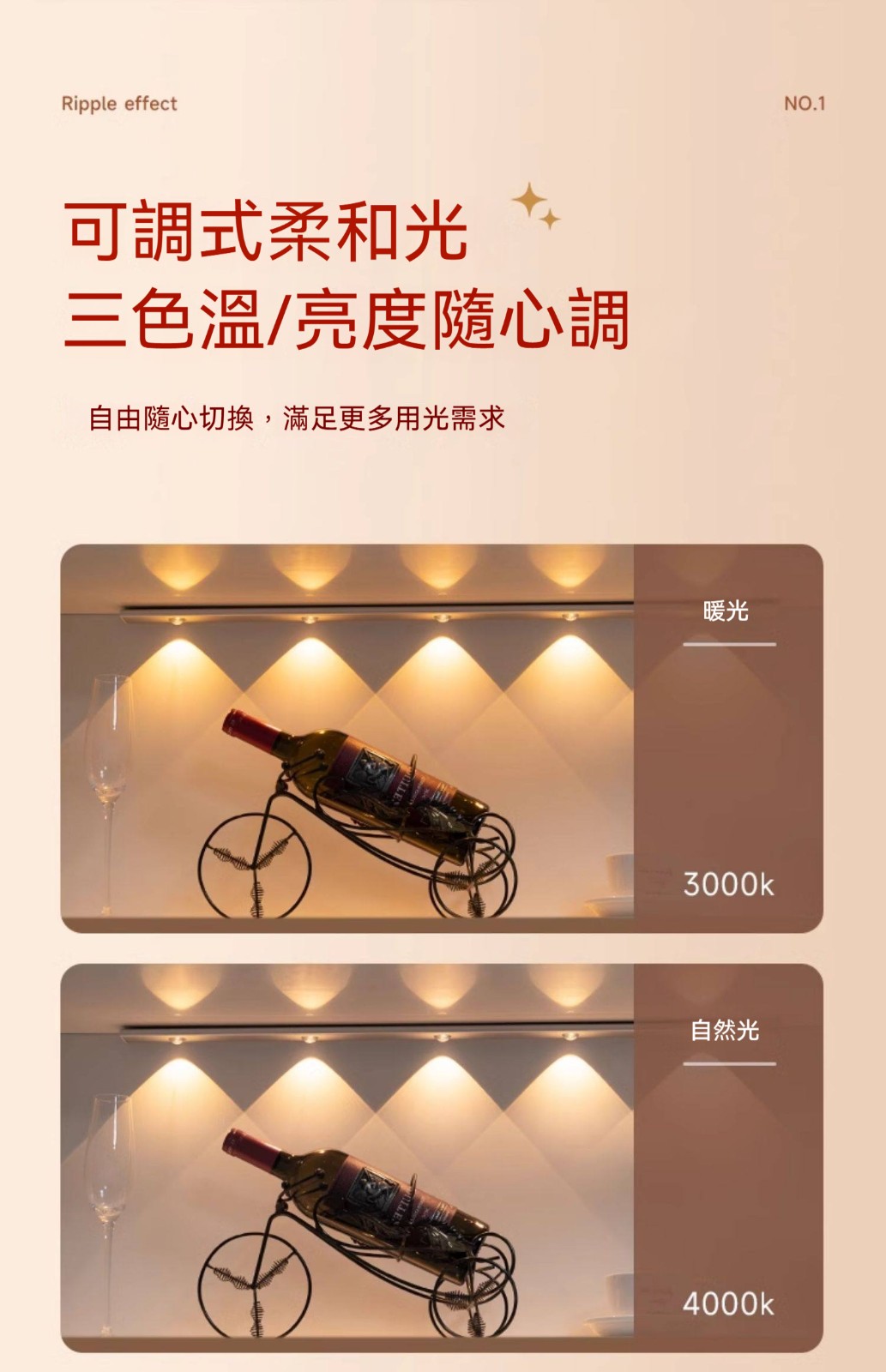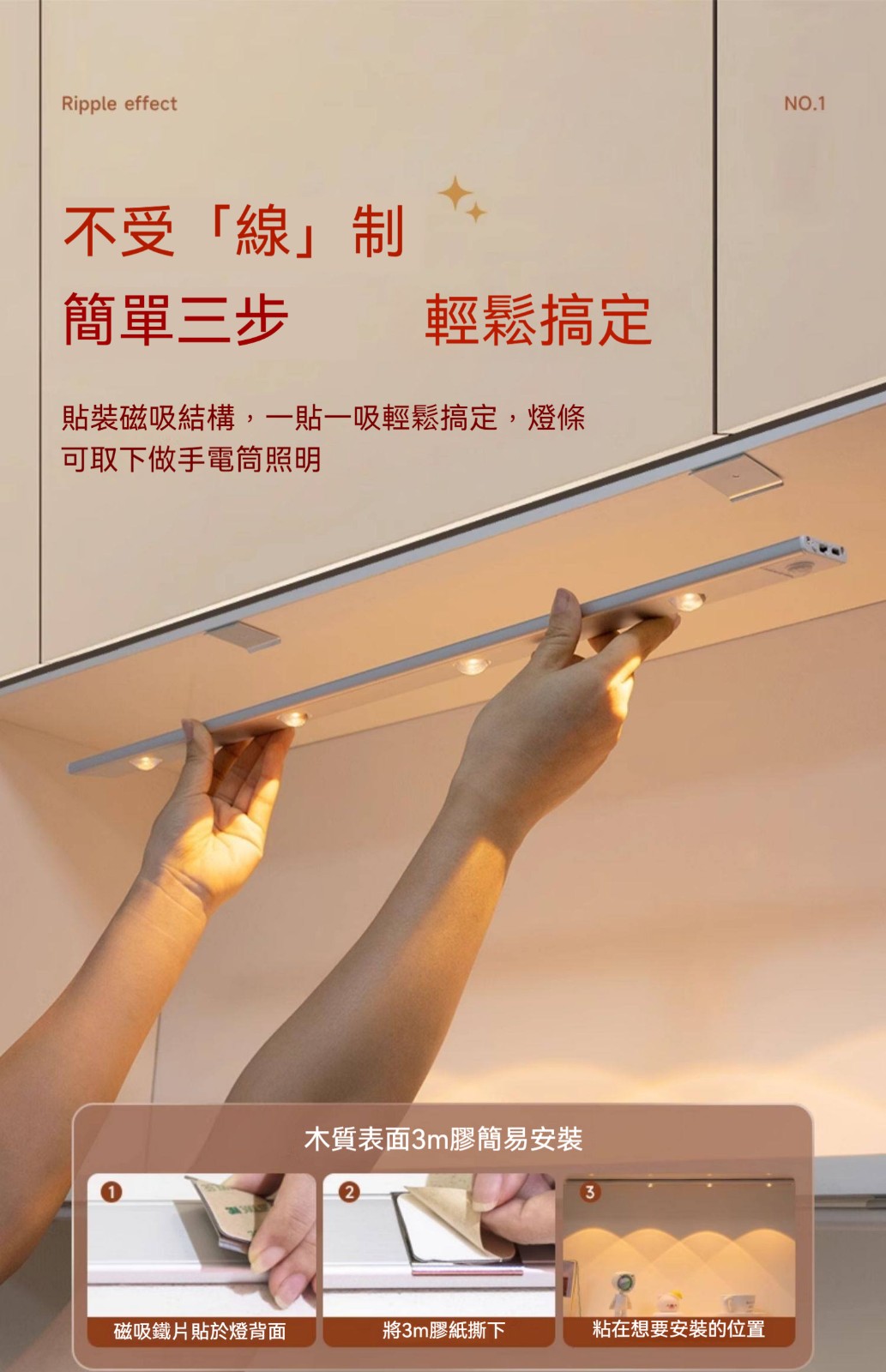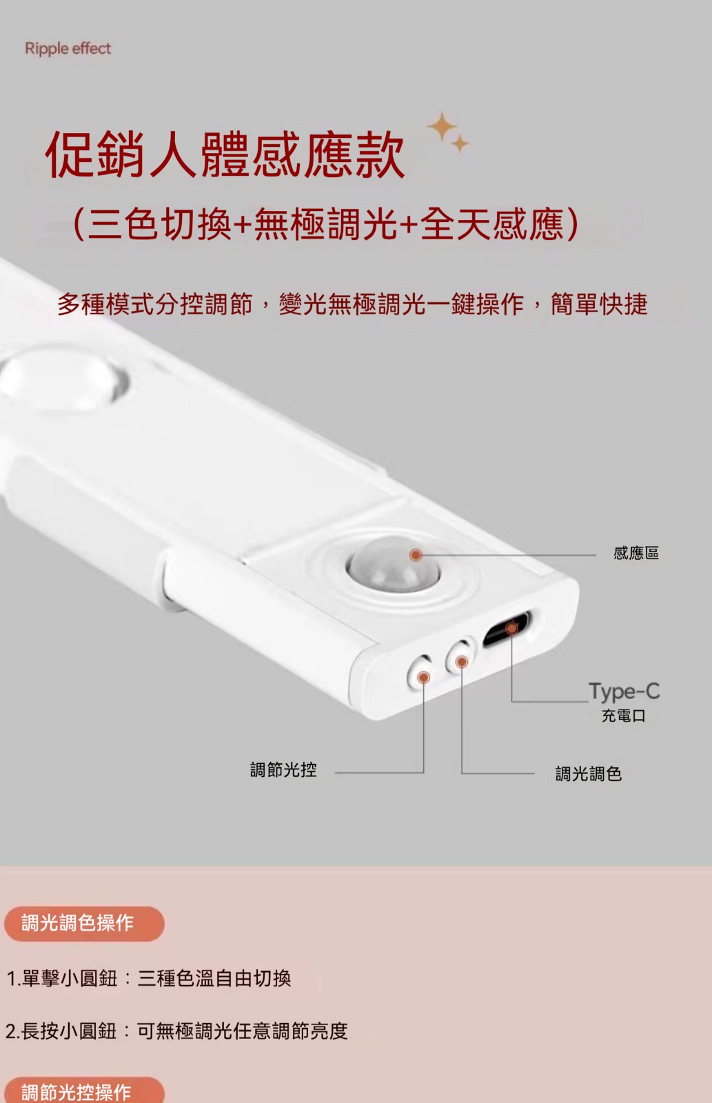 【免打孔魔法光!】充電貓眼感應燈條|山丘光效×人體感應×三色變光×磁吸安裝