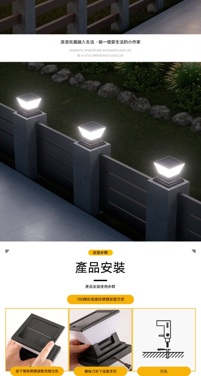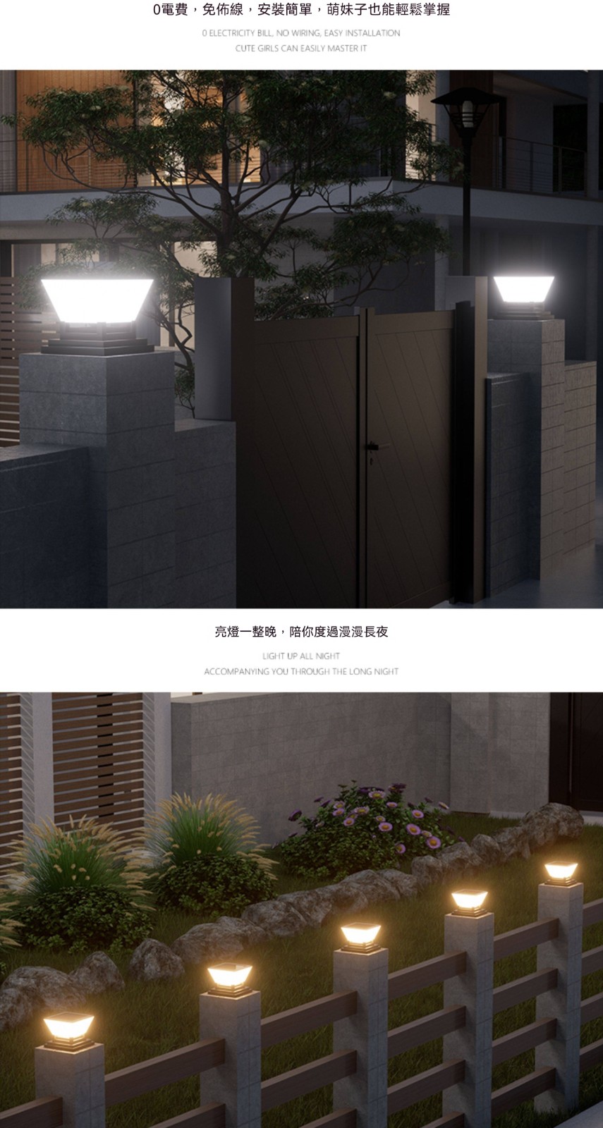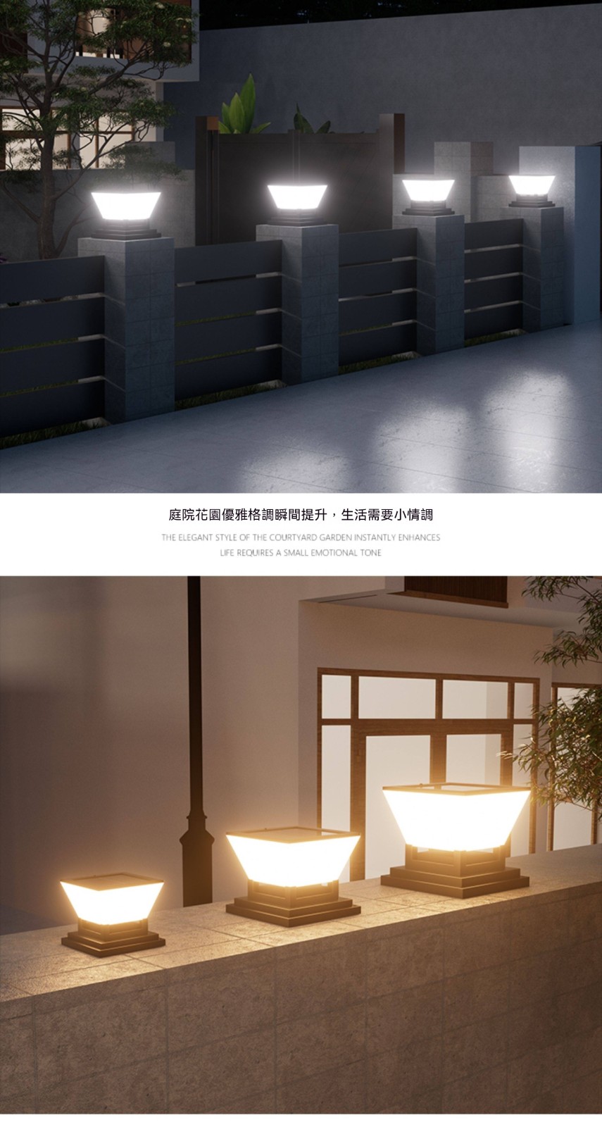 太陽能庭院柱頭燈|免佈線0電費✅智能光控自動亮燈✅ 白天充電、夜晚亮燈,三種光色隨心切換!✅ 為你的庭院增添浪漫氛圍,生活儀式感滿分!