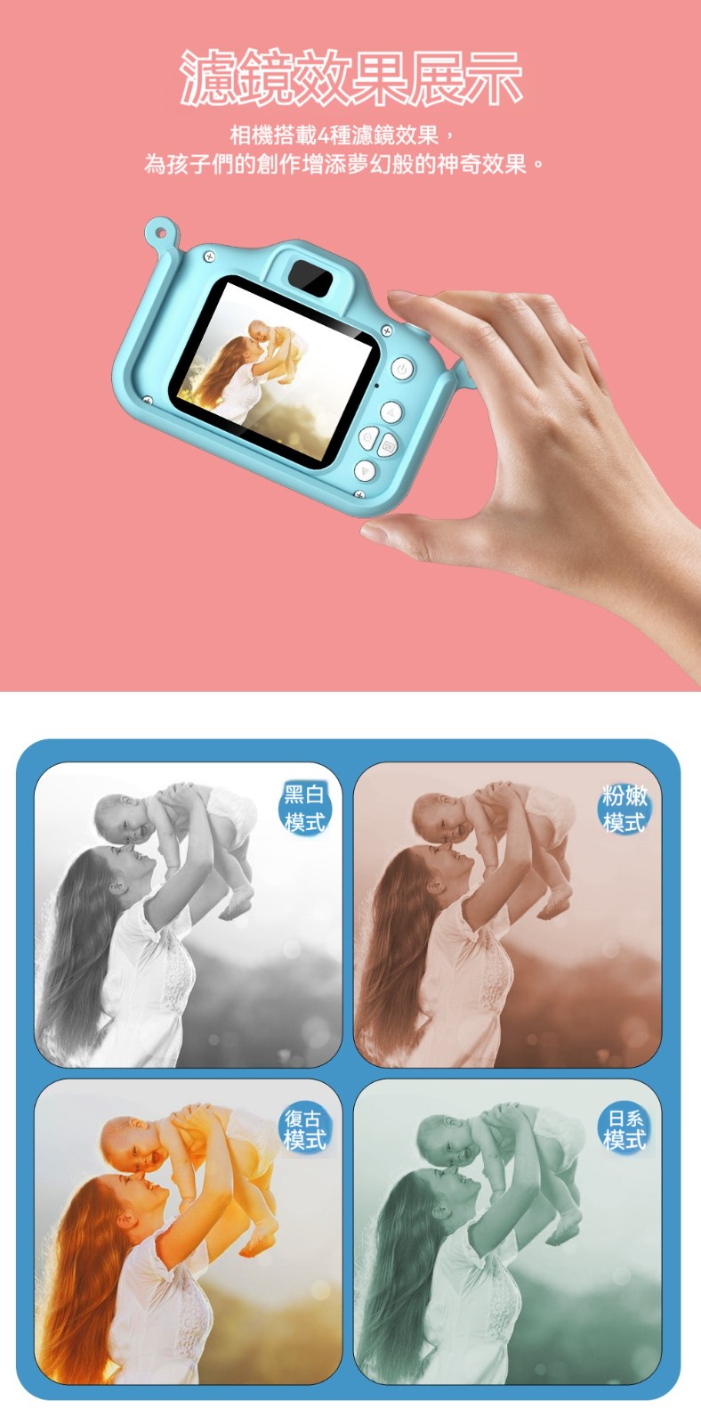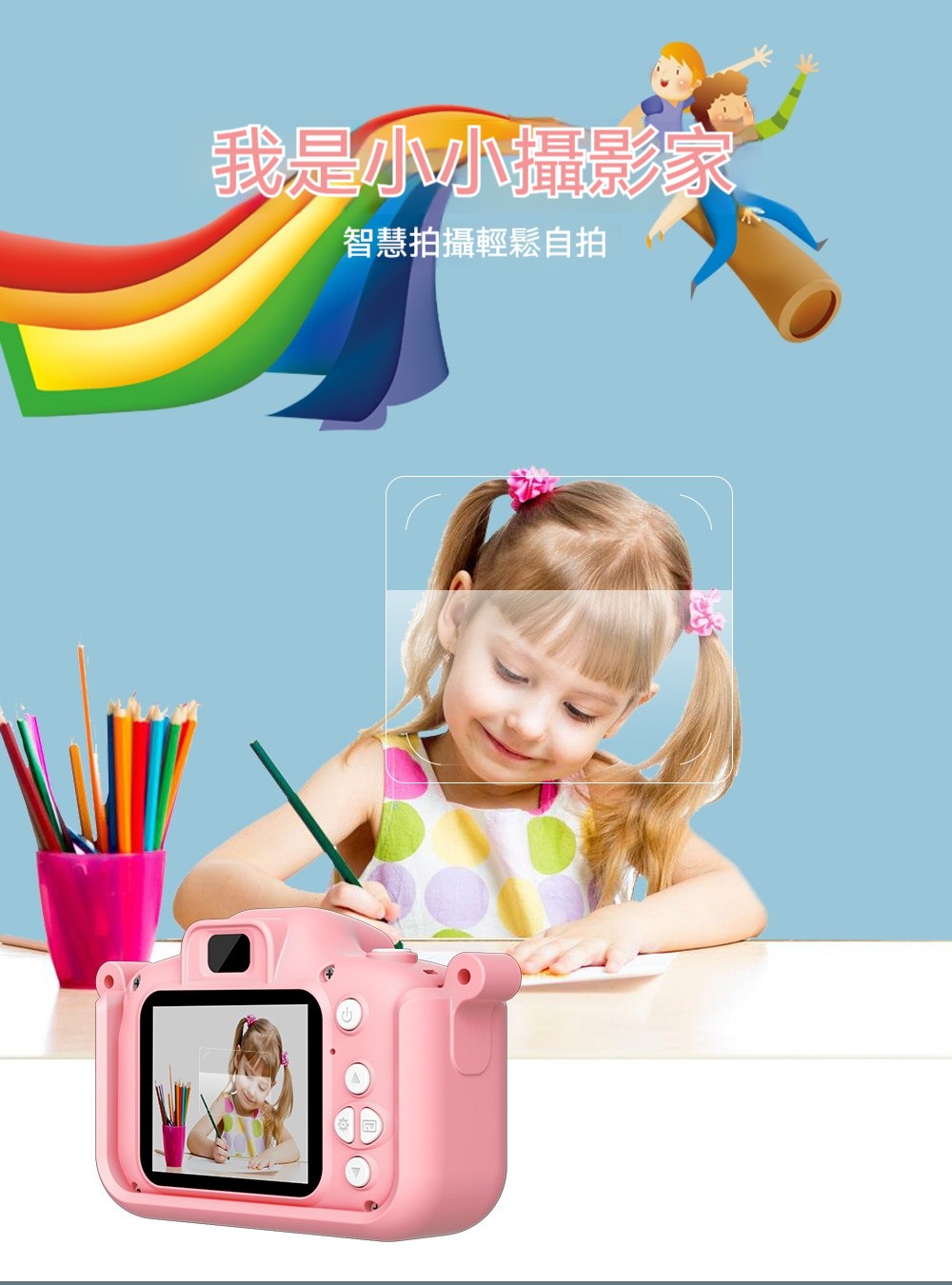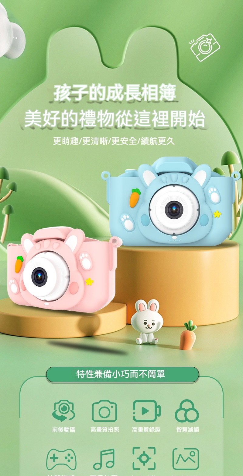 【兒童專屬相機】✅ 前後2000萬雙鏡頭!4種濾鏡 ✅益智遊戲+MP3音樂故事播放✅食品級材質耐撞擊!