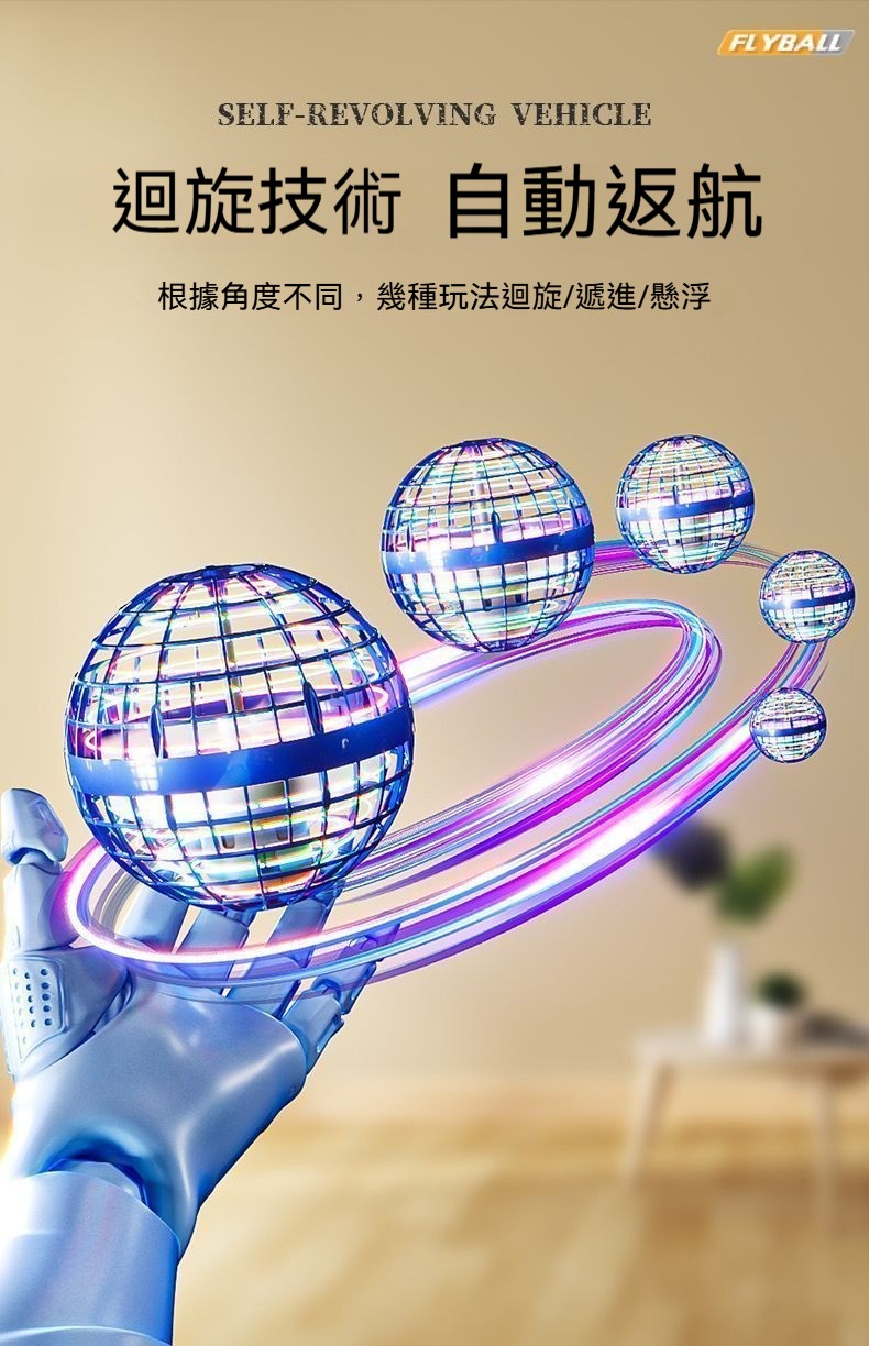 【魔法懸浮球球】✨丟出去自動飛回來!智能回旋技術✨LED七彩燈光✅夜晚玩超醒目