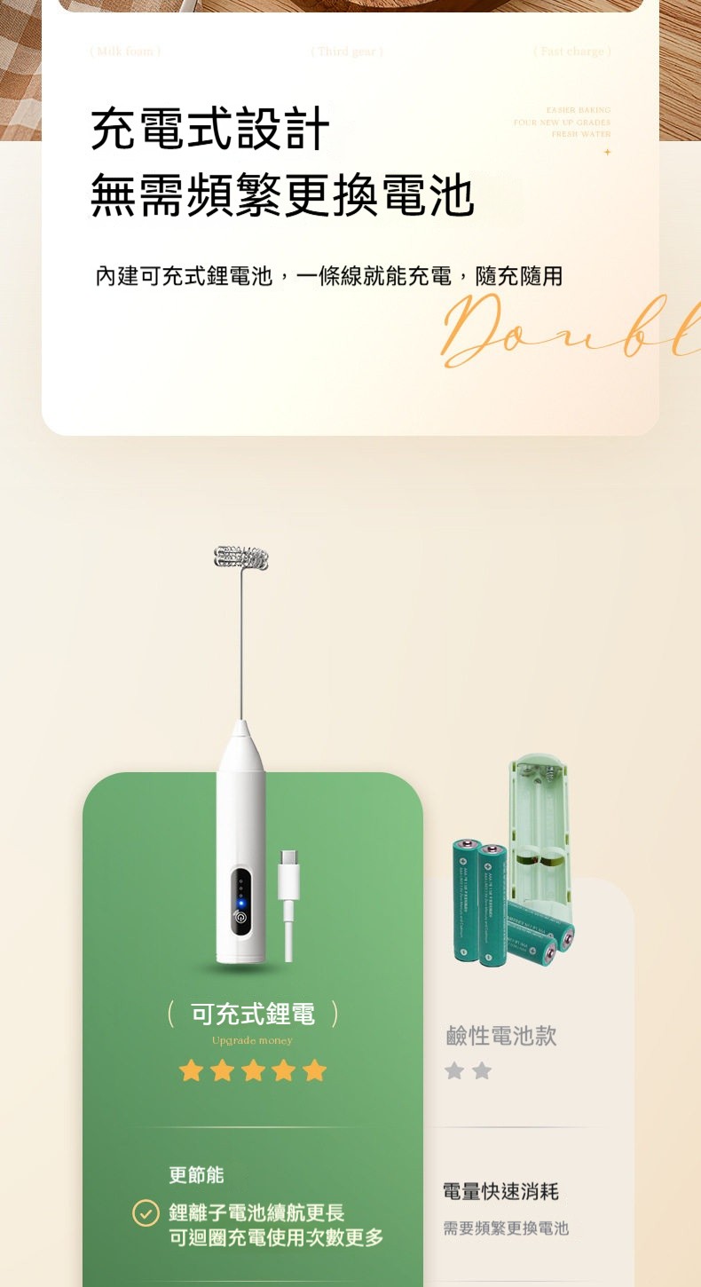 【無線電動奶泡器】⚡雙棒旋風攪拌!三檔變速+Type-C快充⚡居家咖啡館必備✨
