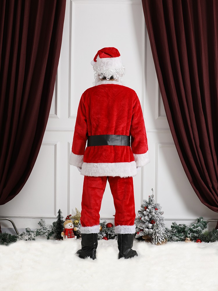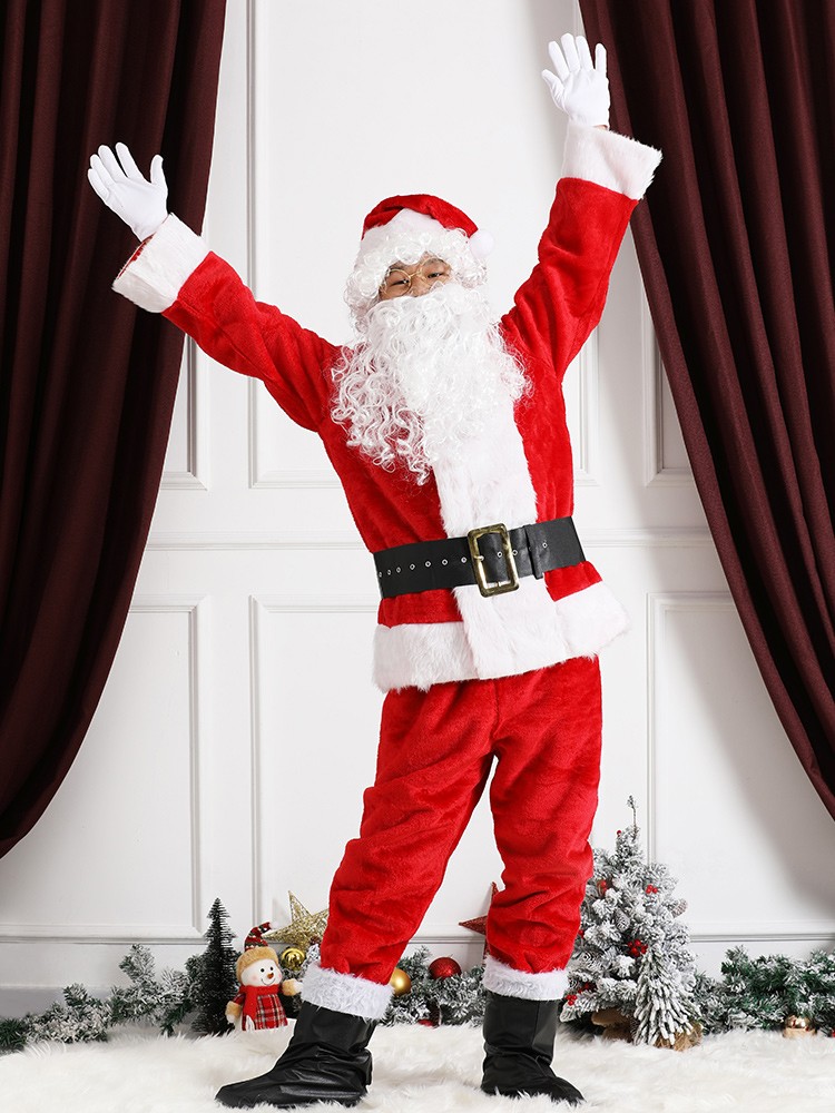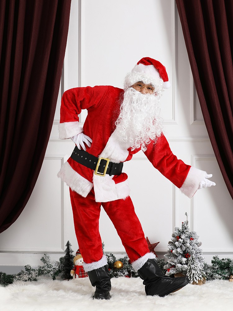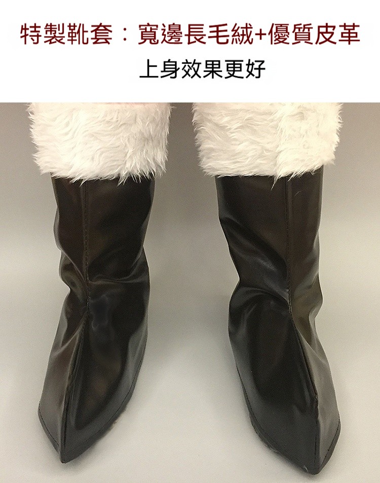 【聖誕老人服飾】✨ 七件套完整組!✨(金絲絨上衣+褲子+腰帶+帽子+鬍子+皮革靴套+禮物袋)加厚長毛絨材質✨