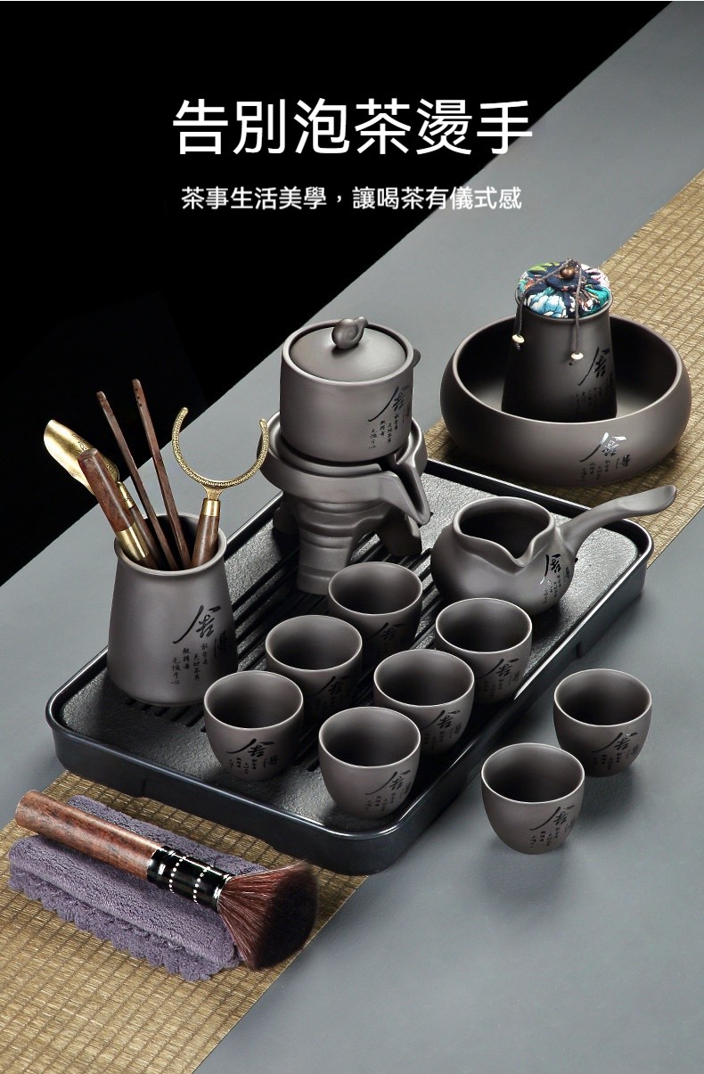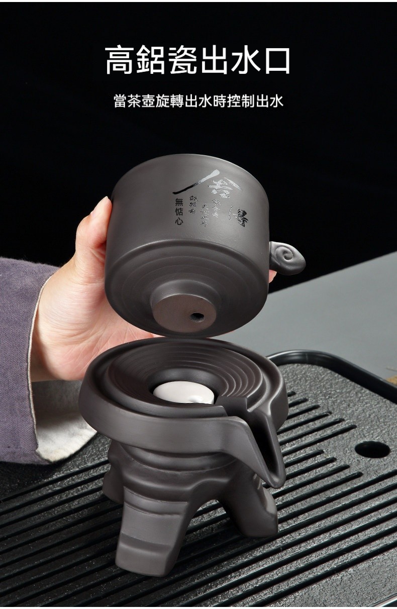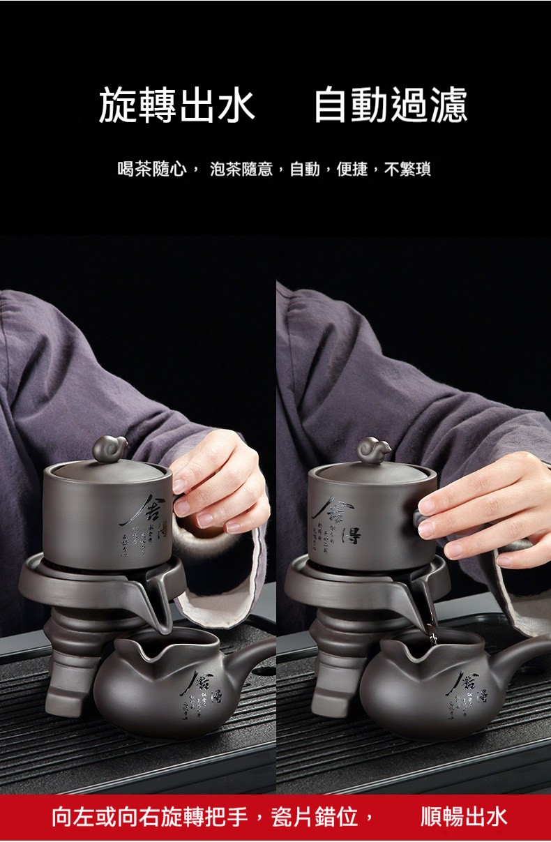 【泡茶不再燙手!】如意黑白動蓋碗組|旋轉出水一鍵過濾|匠師手寫書法茶具
