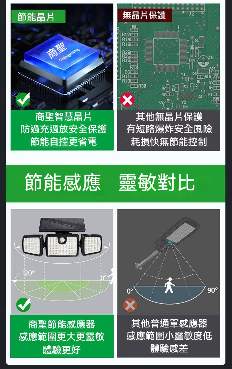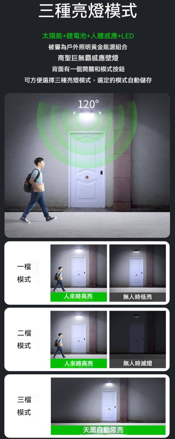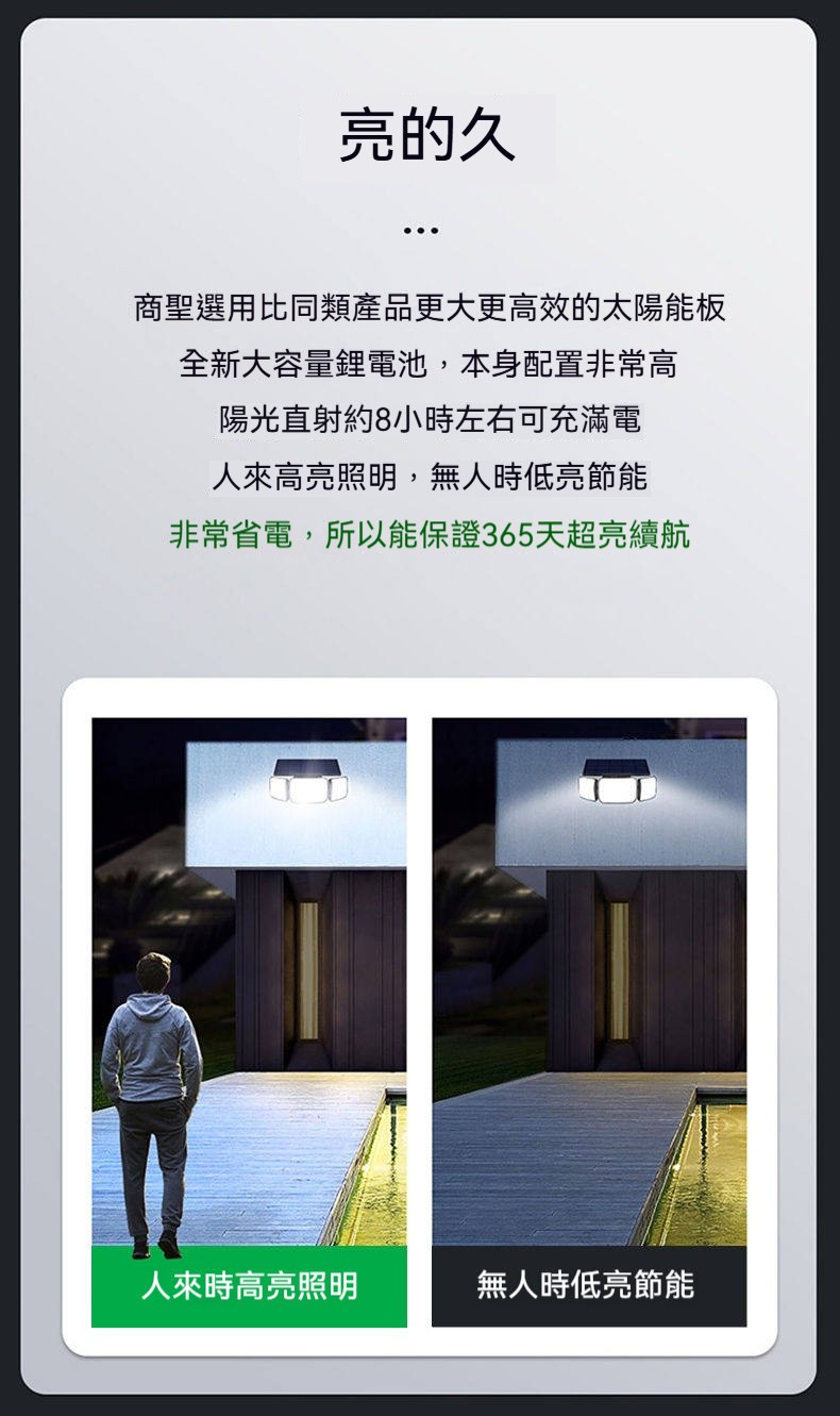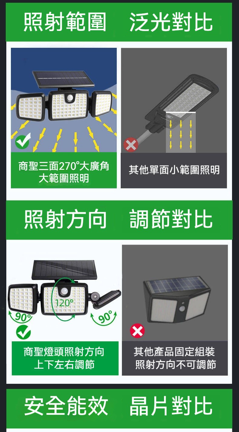 巨無霸太陽能感應燈|三燈頭270°超廣角照明✨ 365天免電費|人來高亮、無人省電|連續陰雨天也亮整夜! 庭院/車庫/巷弄/圍牆,一盞就夠亮!