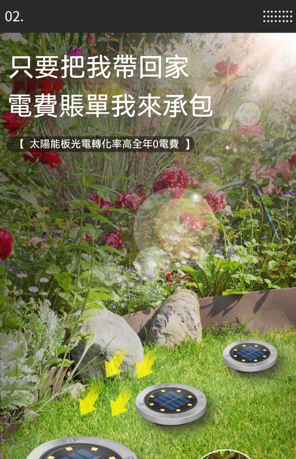 【庭院魔法師!】太陽能地理燈|IP65防水×天黑自動亮×0電費×滿電可亮48小時