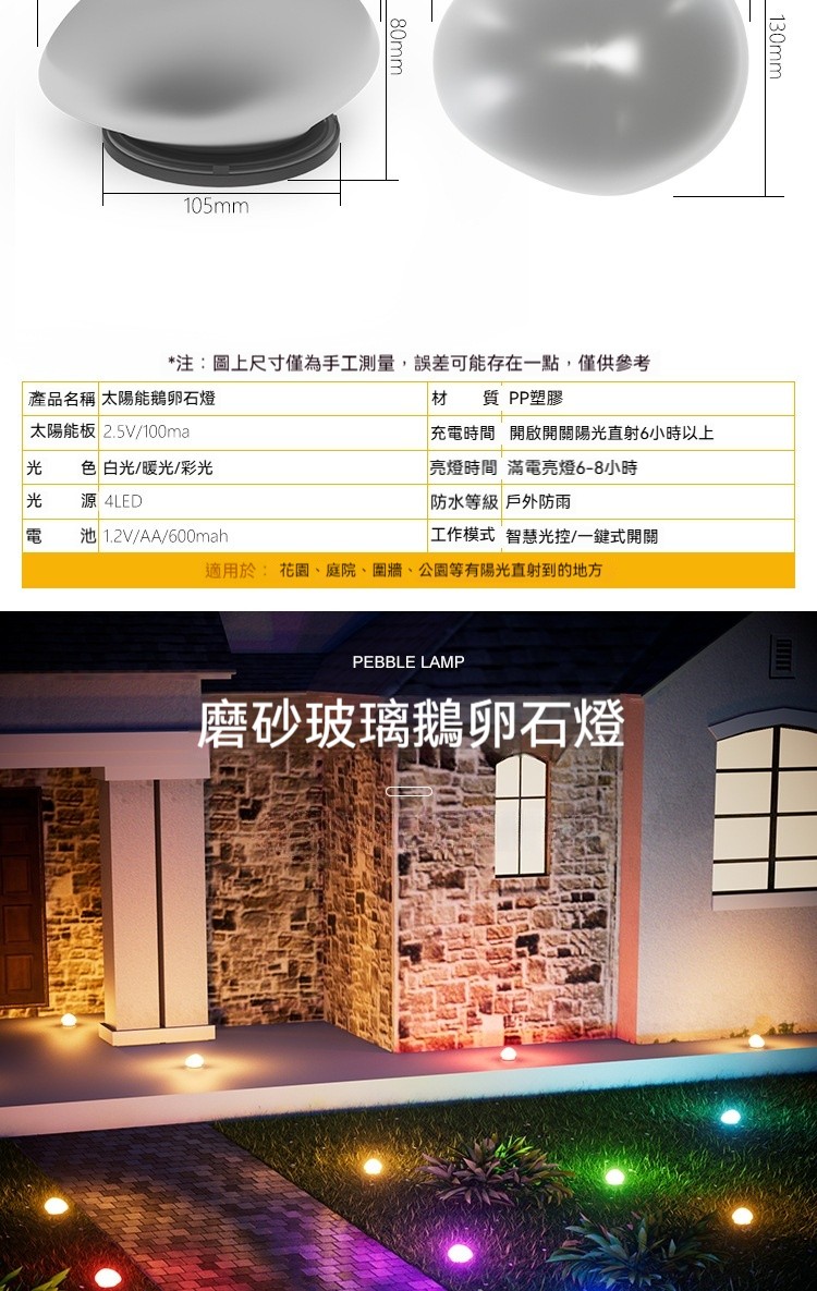 太陽能卵石燈|0電費免佈線!白天充電、夜晚自動亮燈? 磨砂玻璃質感,為庭院花園增添浪漫氛圍! 隨心打造溫馨小院!