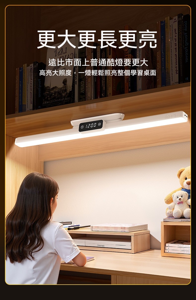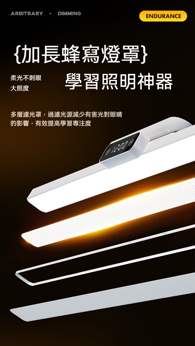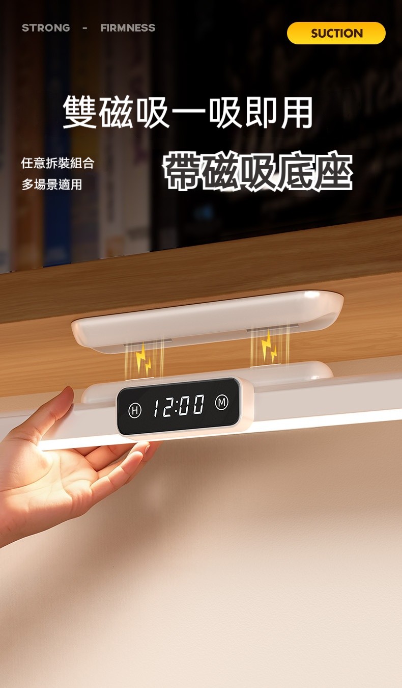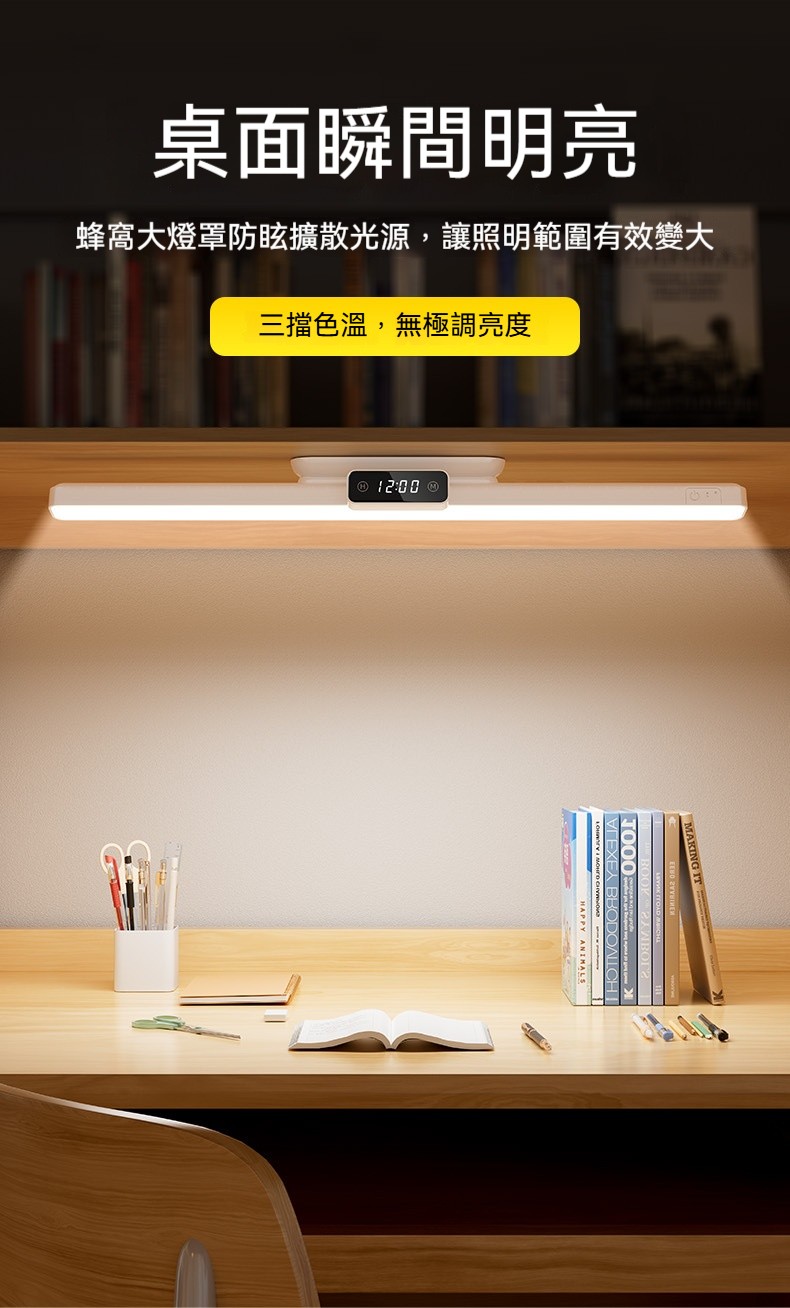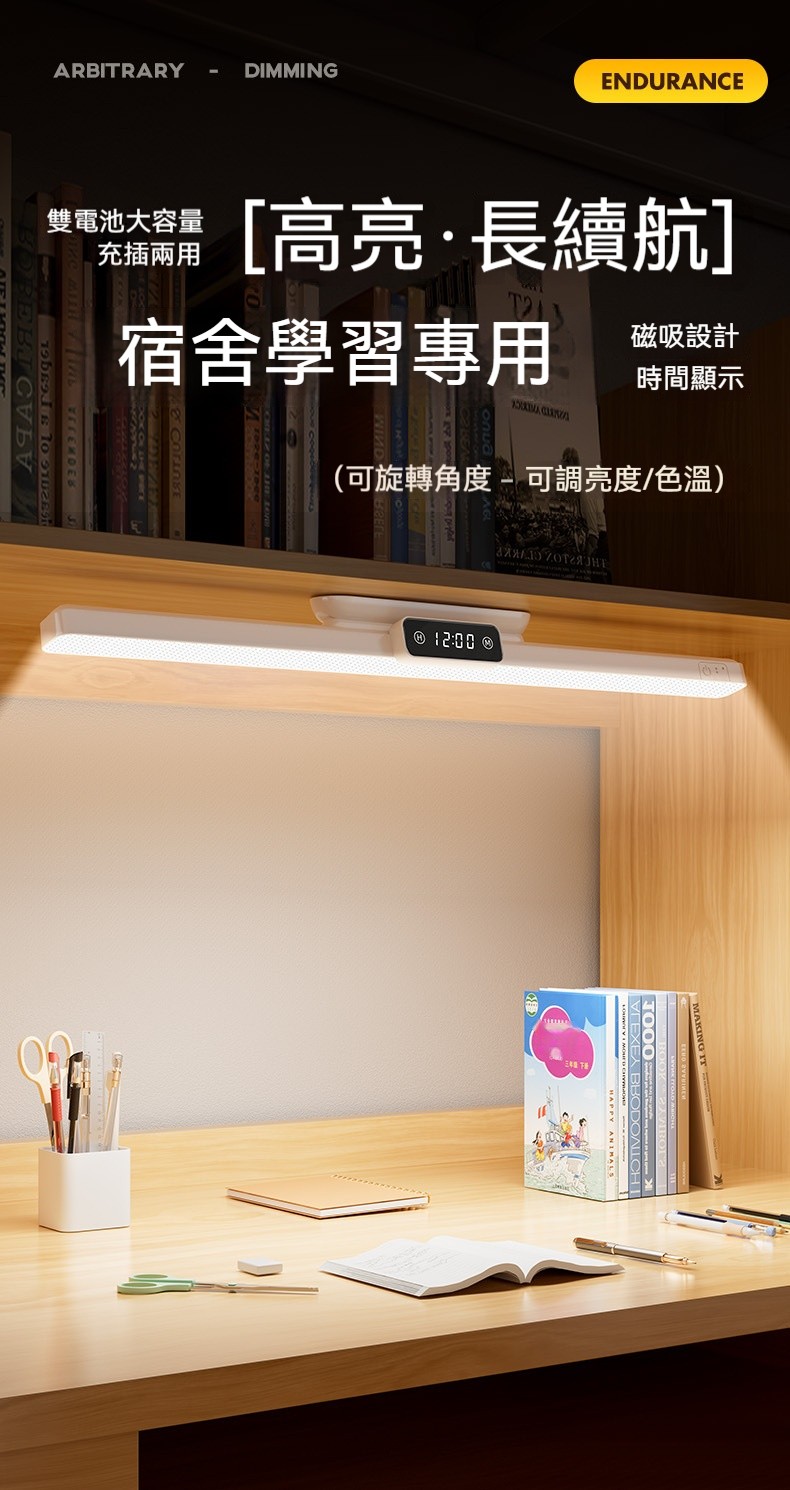 磁吸護眼學習檯燈|雙電池大容量+數位時鐘顯示✨ 三檔色溫+無極調亮度,宿舍/書桌/床頭一燈多用! 蜂巢防眩設計,4200mAh超長續航,充插兩用!