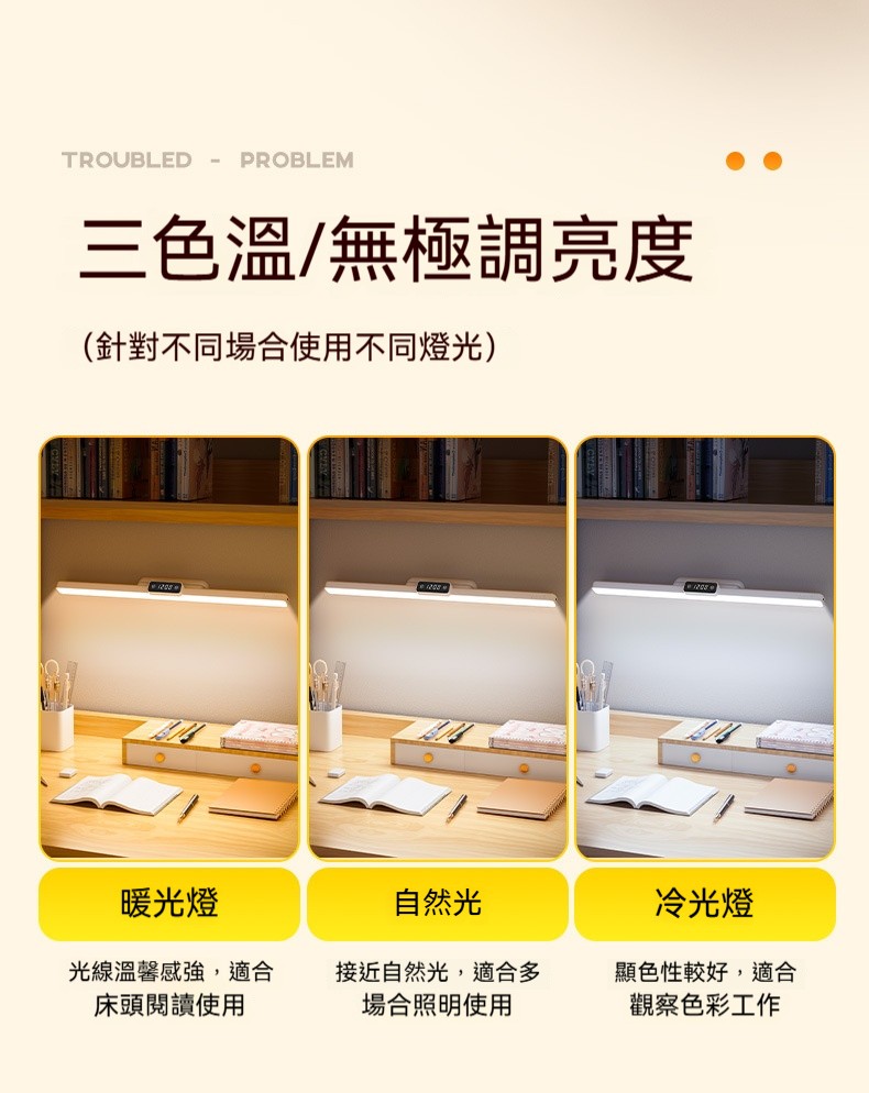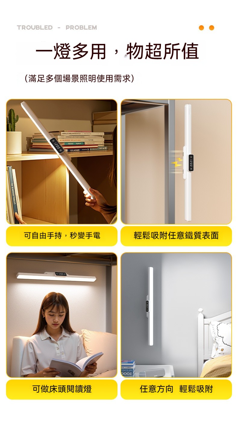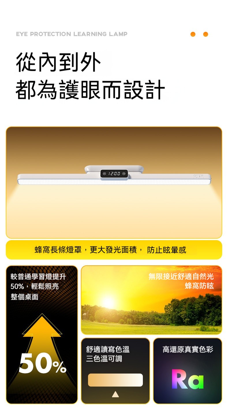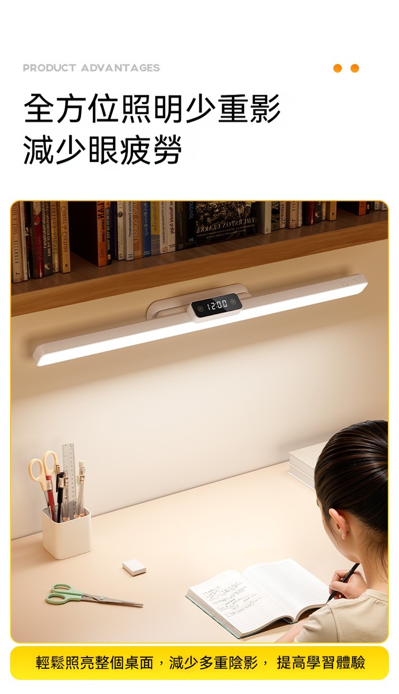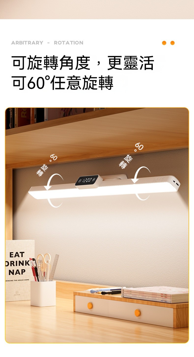 磁吸護眼學習檯燈|雙電池大容量+數位時鐘顯示✨ 三檔色溫+無極調亮度,宿舍/書桌/床頭一燈多用! 蜂巢防眩設計,4200mAh超長續航,充插兩用!