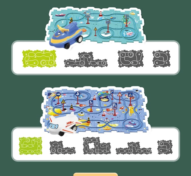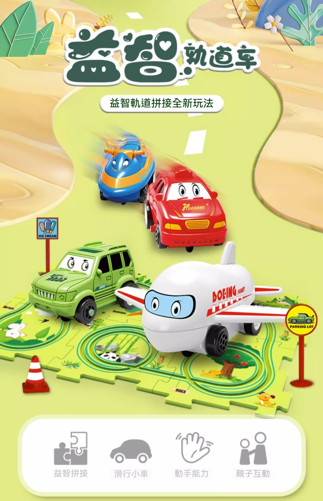 【百變軌道車】⚡4大主題任選!12片拼圖自由組合⚡ 電動小車滑行超順暢~